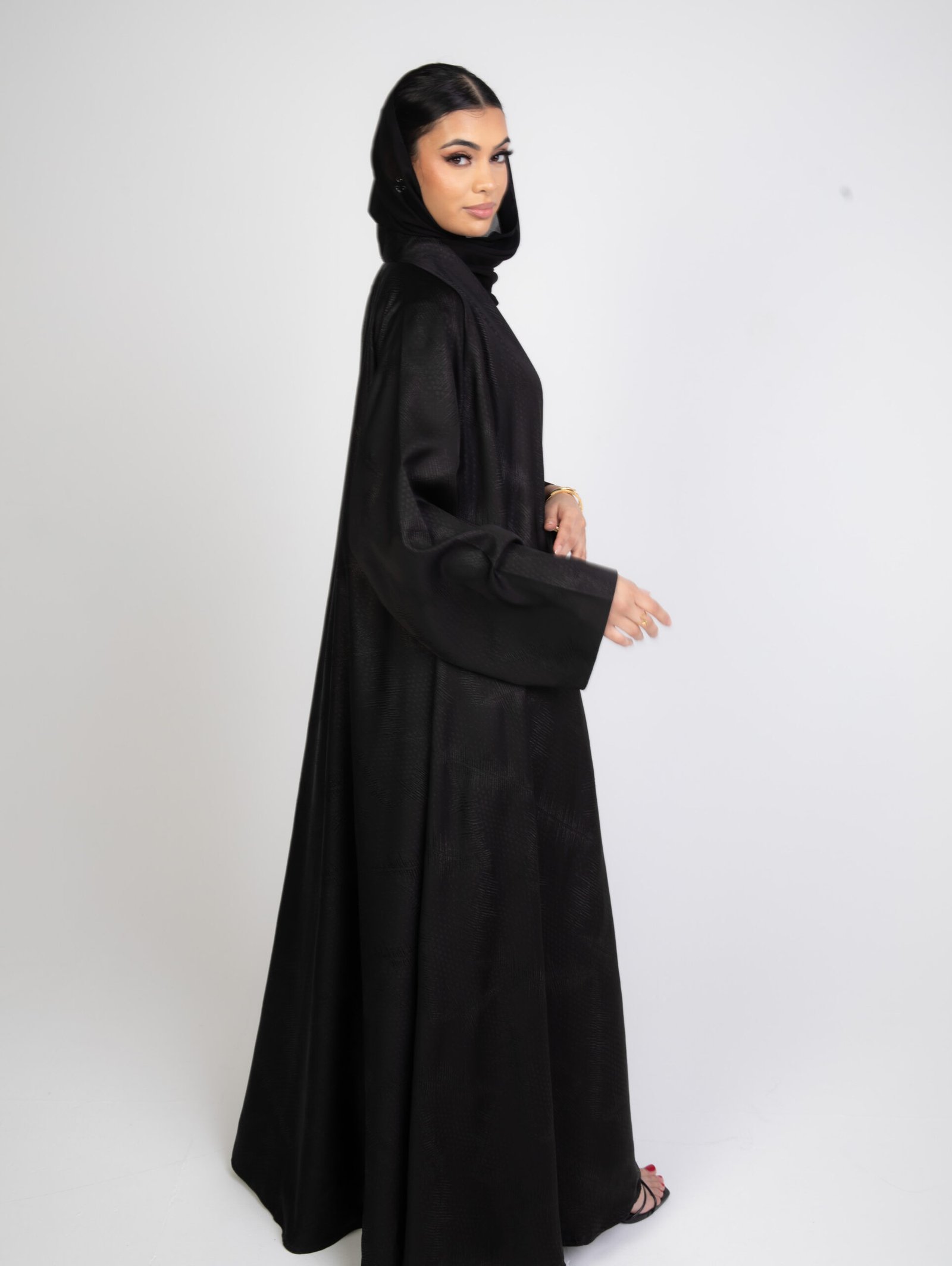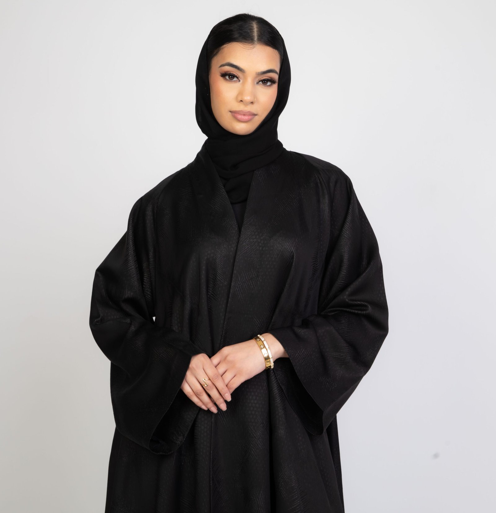 Graciously timeless and effortlessly elegant, this abaya is a true statement of refined modest fashion. Designed with luxurious jacquard fabric, its subtle, tone-on-tone woven pattern twinkles delicately under light, adding depth and sophistication to your look.